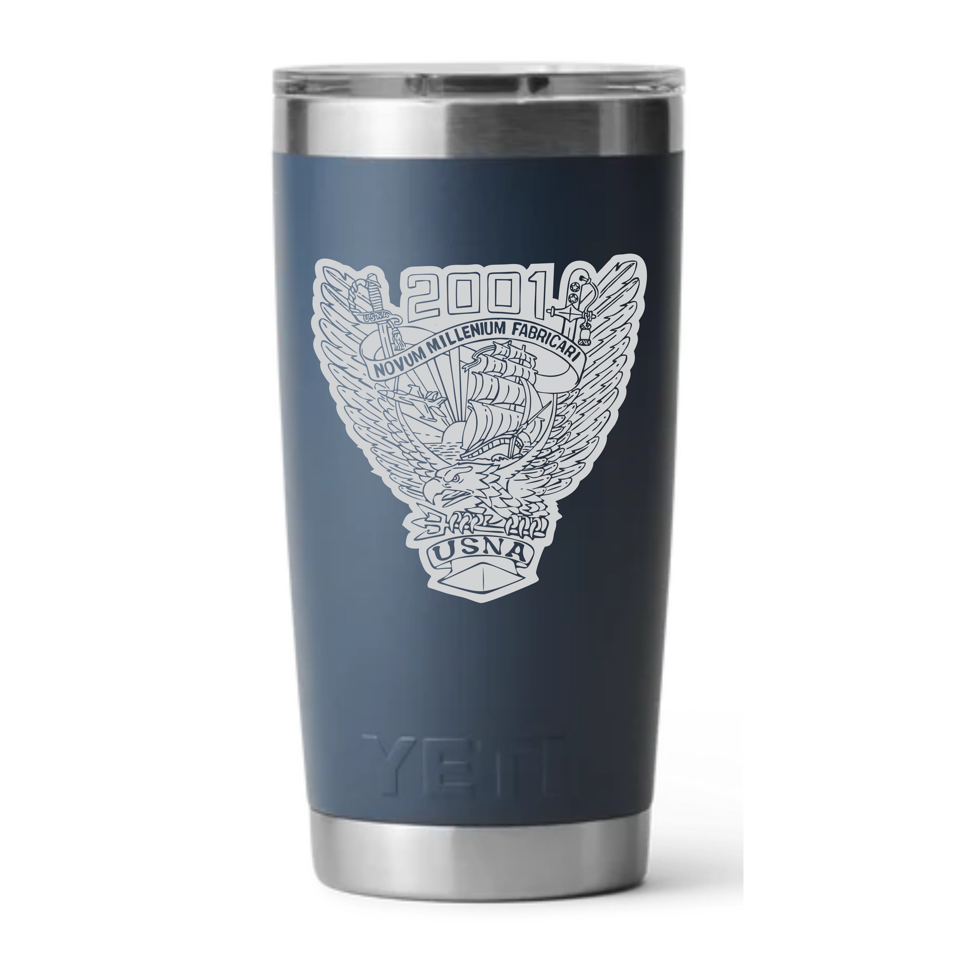 We'll engrave the class of '01 logo on one side and can customize the other side with anything you'd like (name, warfare device, etc).